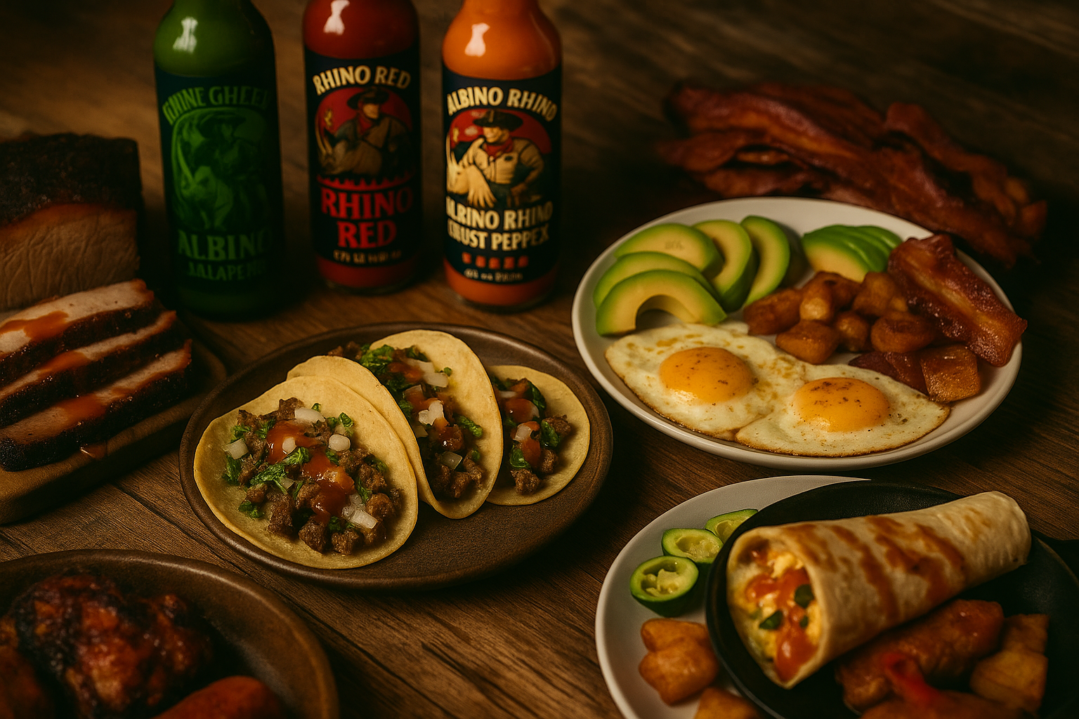 At RhinoSaucerous, every bottle starts with the land. We don’t cut corners — we cut fresh jalapeños, sun-dried arbols, and locally grown ghost peppers. No fillers. No gimmicks. Just bold ingredients that carry the heat and hold the flavor. Each batch is small. Purpose-built. Hand-poured with the spirit and fire of the mighty Rhino. We roast, blend, and bottle by hand — the way real flavor should be made. This is Stampede Heat. Premium peppers. Real smoke. Legendary burn.